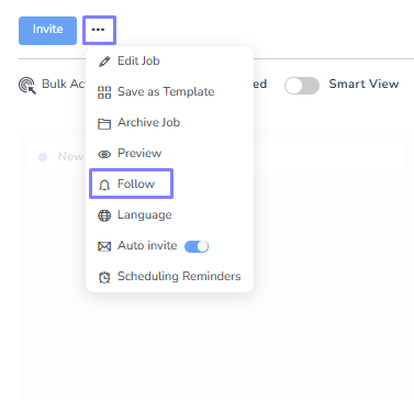 For jobs created by other users on your account, you just need to navigate into your designated Job from the Jobs tab, and click on the “Follow” option from the drop-down menu. If the wording states “Following” and it’s highlighted in blue, you are indeed following that Job”.
