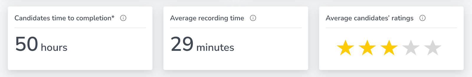 Calculation: Number of minutes from the moment the candidate clicks “Start” until they submit their interview.