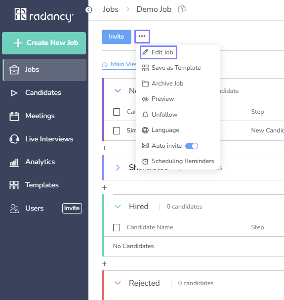 • You can archive your job by clicking on the 3 dots > Archive Job.