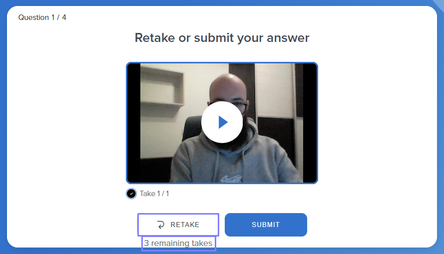 If you don’t see this button after recording, it means either the company hasn’t enabled retakes or you’ve already used all of your allowed attempts. In that case, you’ll need to proceed with the answers you’ve recorded.