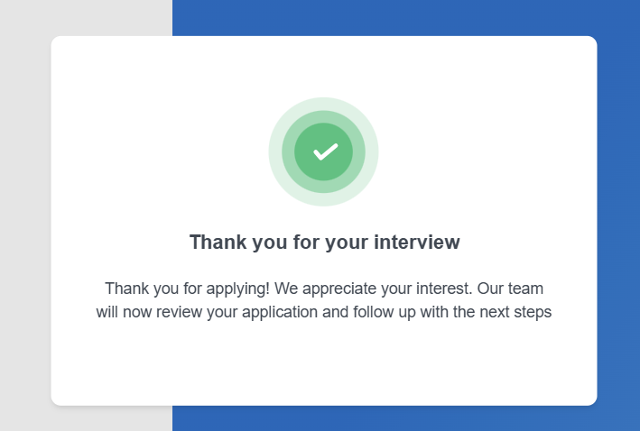 Once the interview is submitted, a confirmation message will appear to let the candidate know their interview was submitted successfully.